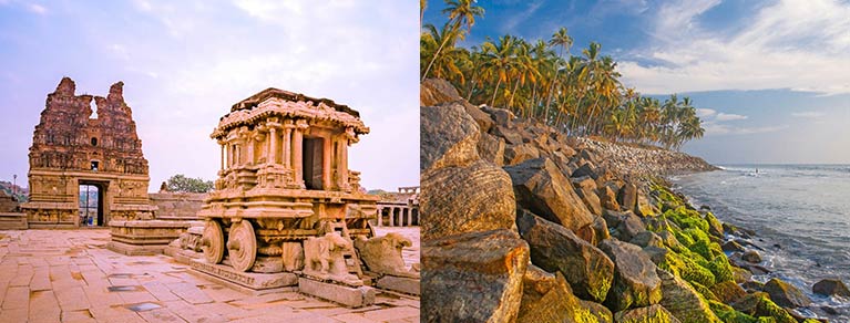 Arrive in Hampi, a UNESCO World Heritage Site, filled with awe-inspiring ruins, temples, and surreal landscapes.